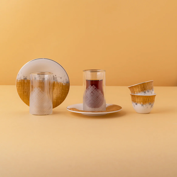 طقم شاي وقهوه دبل وول18قطعه ذهبي