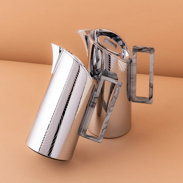 طقم مطارات العز2قطعه1.07لتر فضي لامع مسكه رمادي رخامي