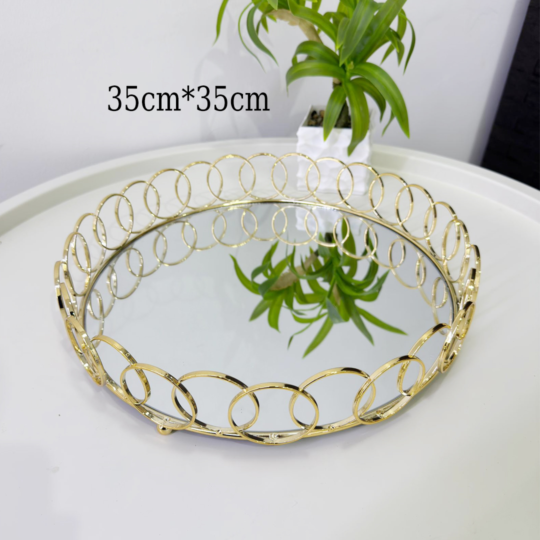 طقم صواني ذهبي دائري
